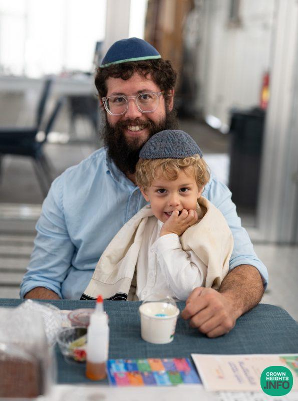 Each child had been joyfully carried in, wrapped in their father’s tallis. Each place around the table had been set with all the traditional items to be used in the ceremony: an egg with a possuk stamped on it, honey cake engraved with another possuk, the sha’ar blatt of Tanya on which the children pointed out the letter Alef, and even a yarmulka to decorate and keep them entertained during transitions. “They thought of everything!” says Mrs. Wolff.