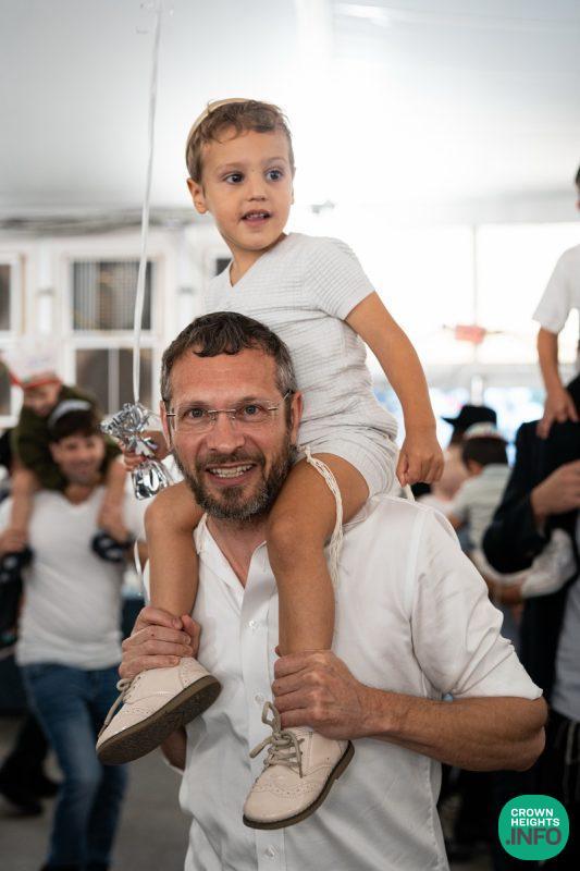 Leading the boys and their fathers in the series of arainfirnish minhagim was LEC’s longtime and beloved mechanech Rabbi Yaakov Roth, who himself had once taught many of the gathered parents—including Mrs. Wolff—and has led generations of students through the rituals. “He never misses a detail on frumkeit and chassidishkeit,” she says. “He does everything right, according to the hora’os of the Rebbe. I was so happy he was there to do it with my son.”