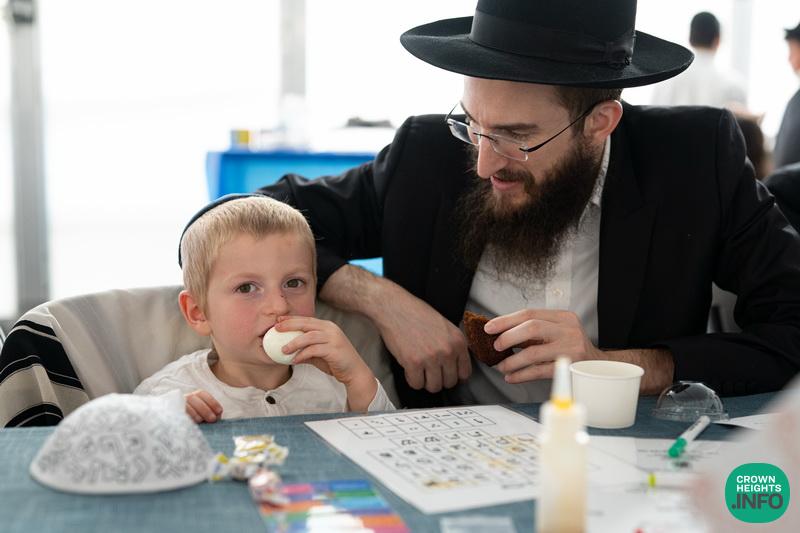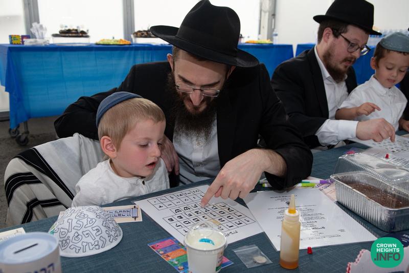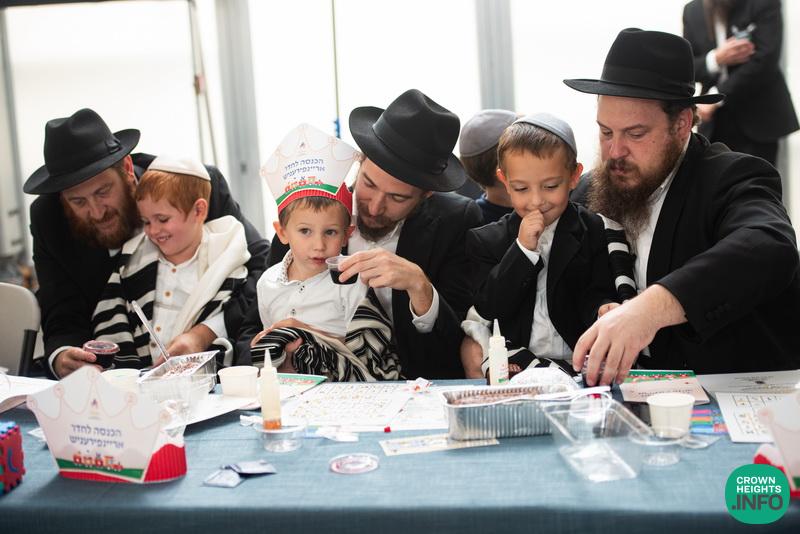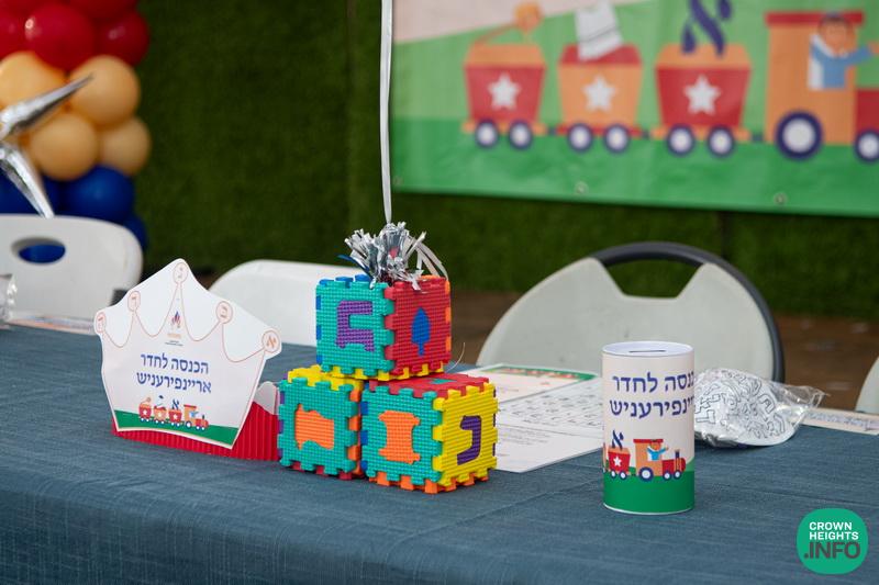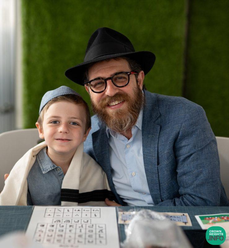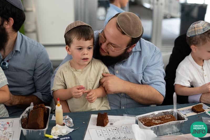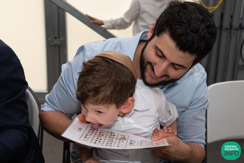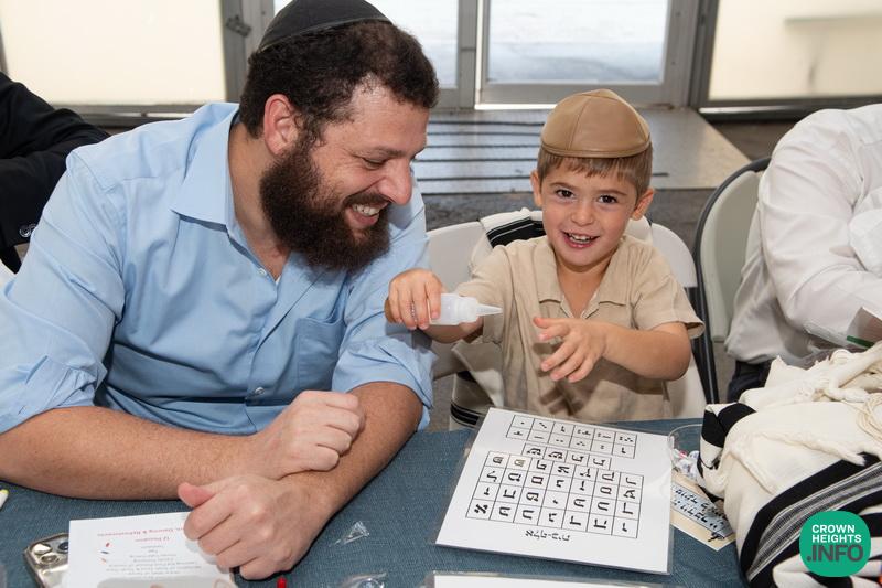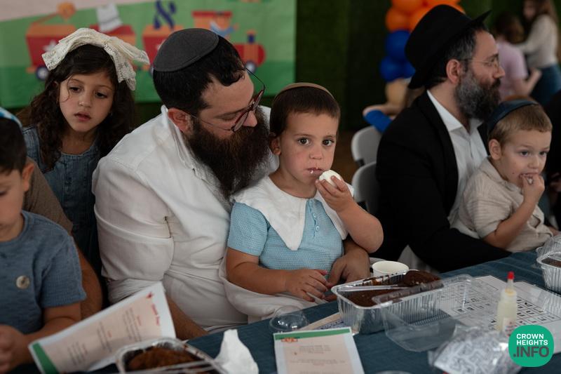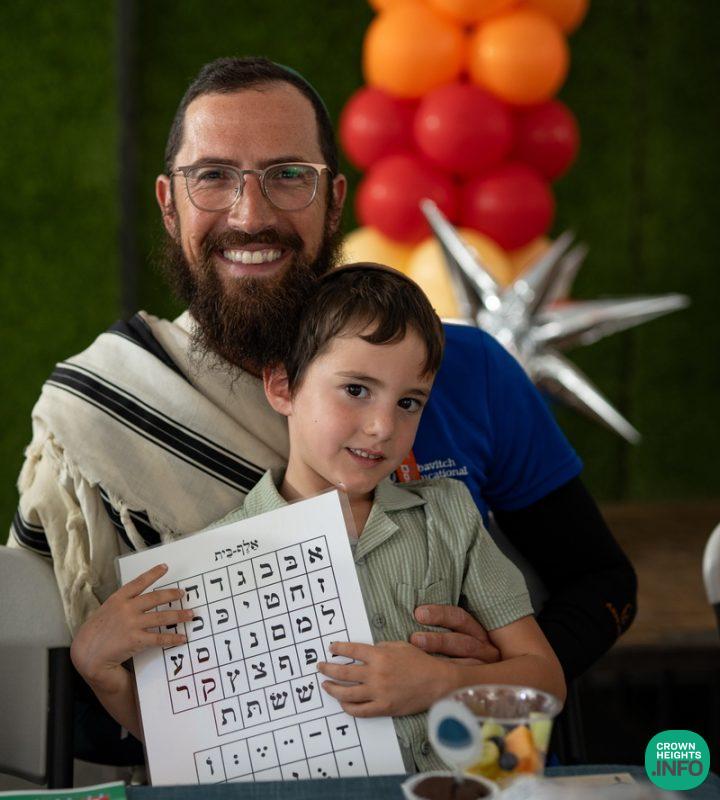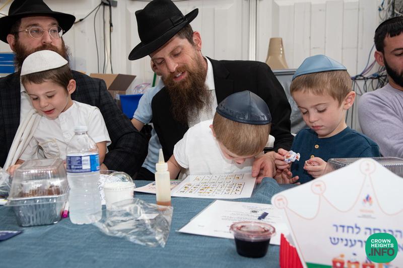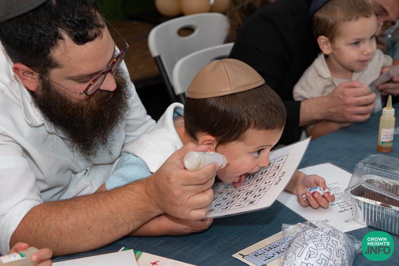Each child had been joyfully carried in, wrapped in their father’s tallis. Each place around the table had been set with all the traditional items to be used in the ceremony: an egg with a possuk stamped on it, honey cake engraved with another possuk, the sha’ar blatt of Tanya on which the children pointed out the letter Alef, and even a yarmulka to decorate and keep them entertained during transitions. “They thought of everything!” says Mrs. Wolff.