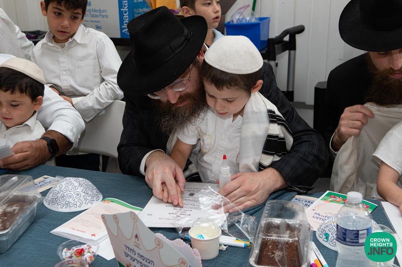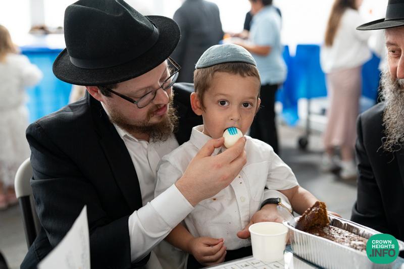 Leading the boys and their fathers in the series of arainfirnish minhagim was LEC’s longtime and beloved mechanech Rabbi Yaakov Roth, who himself had once taught many of the gathered parents—including Mrs. Wolff—and has led generations of students through the rituals. “He never misses a detail on frumkeit and chassidishkeit,” she says. “He does everything right, according to the hora’os of the Rebbe. I was so happy he was there to do it with my son.”