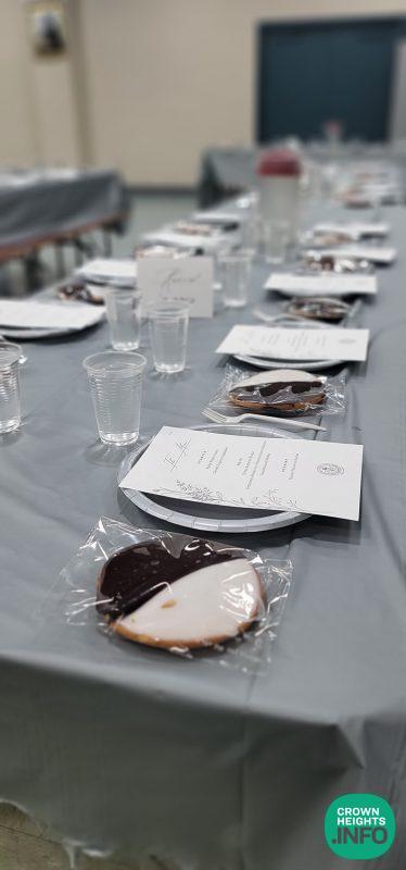 Afterward,everybody enjoyed a lavish lunch with wedding-style printed menus, adding a special touch, while hearing Rabbi A. Sherr’s personal encounter of receiving the Kuntres ‘Drushei Chasuna’ from the Rebbe on 17 Kislev, 5752.