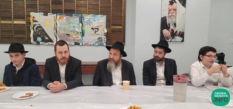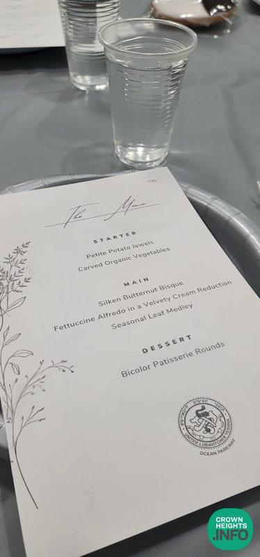 Afterward,everybody enjoyed a lavish lunch with wedding-style printed menus, adding a special touch, while hearing Rabbi A. Sherr’s personal encounter of receiving the Kuntres ‘Drushei Chasuna’ from the Rebbe on 17 Kislev, 5752.