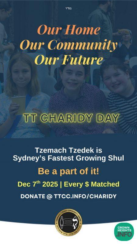 Tzemach Tzedek is also currently running a Charidy campaign. The initiative aims to upgrade their premises and expand their vital programs. The campaign focuses on enhancing the experience for both Anash and Mekuravim alike, ensuring the Shul remains a vibrant and increasingly expanding hub for Jewish life in Sydney.