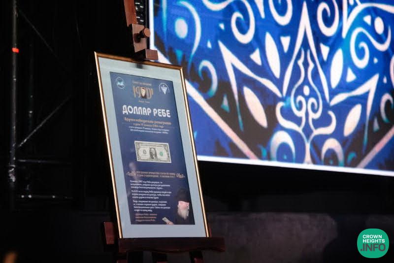 The community chairman, Rabbi Baruch Gorin, invited the president of the Federation of Jewish Communities in Russia, Rabbi Alexander Boroda, to come up and receive a rare gift in appreciation for his support of this great event: an original “Telegram” with the blessings of the Lubavitcher Rebbe in honor of the holiday of redemption on the 19th of Kislev, inside a luxurious frame.