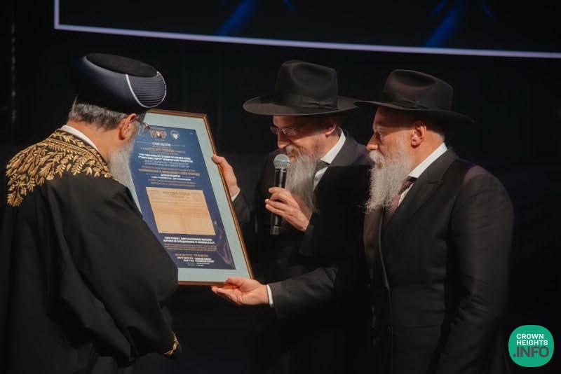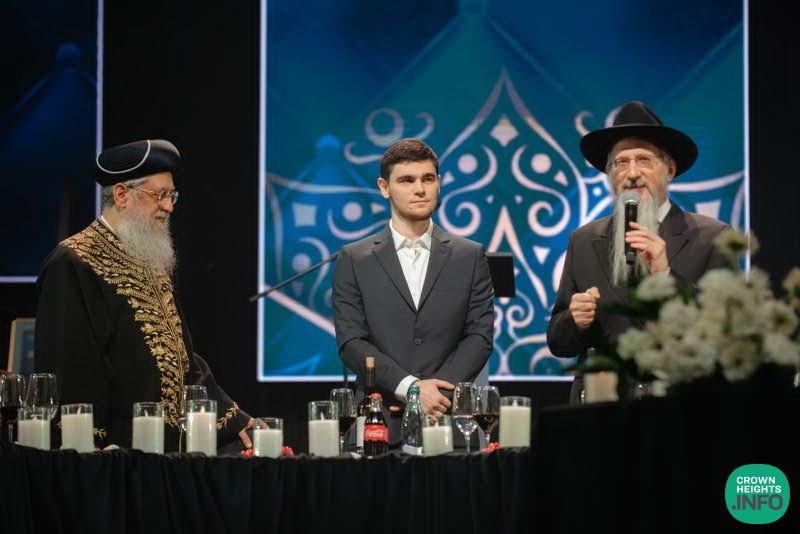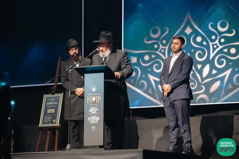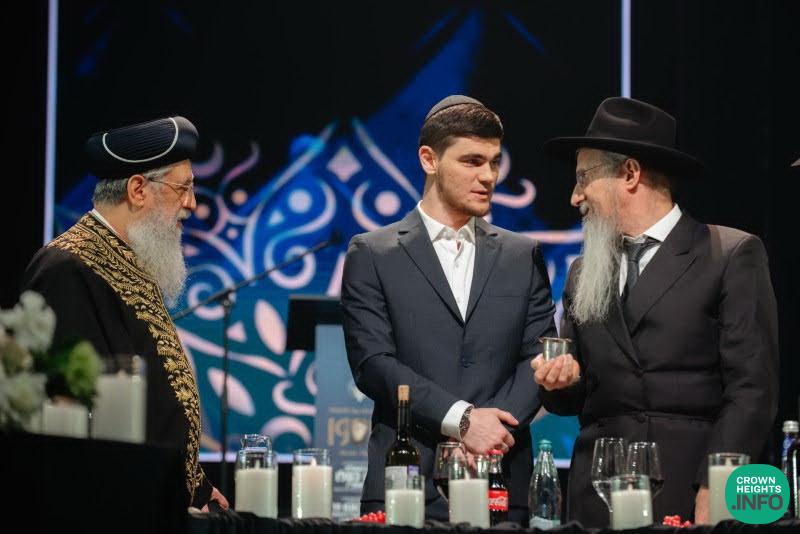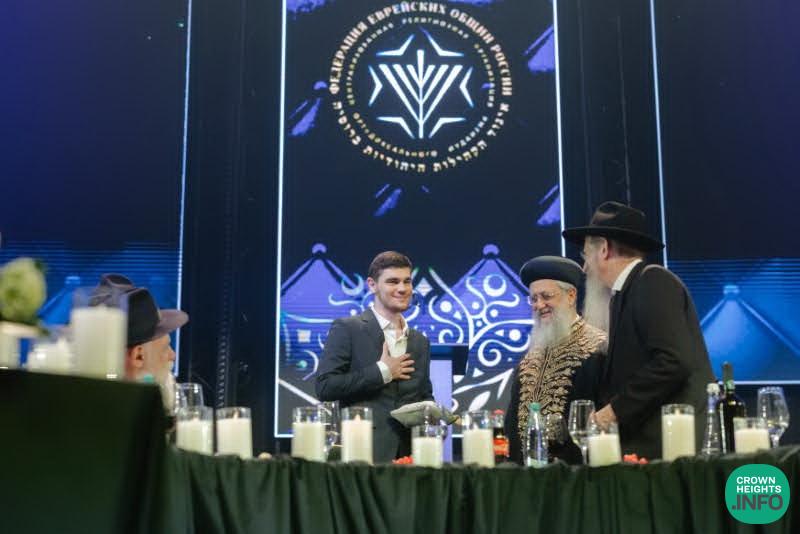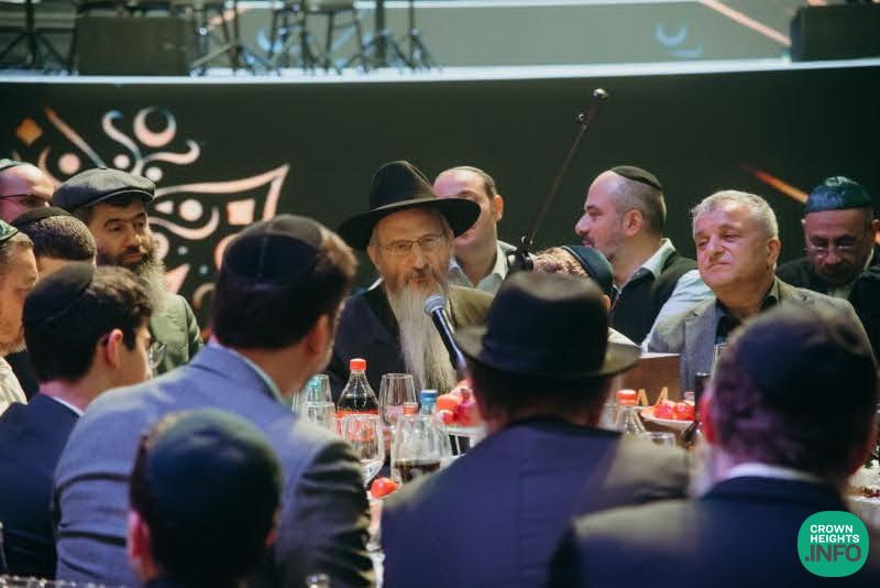 He added: “I came here to express my appreciation on behalf of all the Jews of Israel and the Diaspora, to the Chief Rabbi of Russia, the Gaon Rabbi Lazar, for his untiring work for all the Jews of Russia and even beyond. There are many Yeshivas and flourishing Torah institutions here, and all thanks to one man, the Gaon, the Chassid, the Chief Rabbi, who came here a number of decades ago when it was still under the Iron Curtain. He suffered severely in the early days, to the point of hunger, and today we see Judaism flourishing here. I came here especially to honor the work of Rabbi Lazar, and I bless him and all those who are gathered here today; the esteemed rabbis, the great activists and supporters of the Torah, may they continue to rise ever higher fulfilling the Rebbe’s aspirations.
