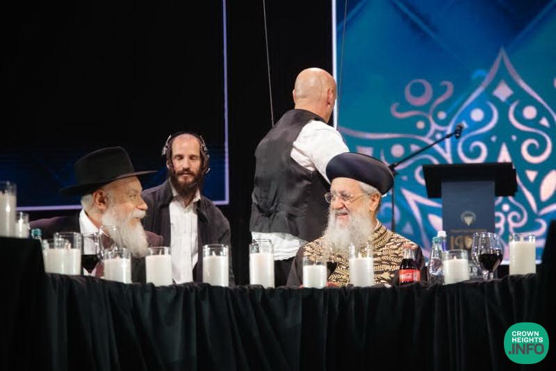 After screening footage of the Holy Lubavitcher Rebbe, video clips showcased the activities of the Shluchim with the Sephardic communities in the FSU countries over several generations. The videos were accompanied by Mizrahi singer Rabbi Moshe Locke who sang nigunim that had been sung during the Rebbe’s farbrengens in 770.