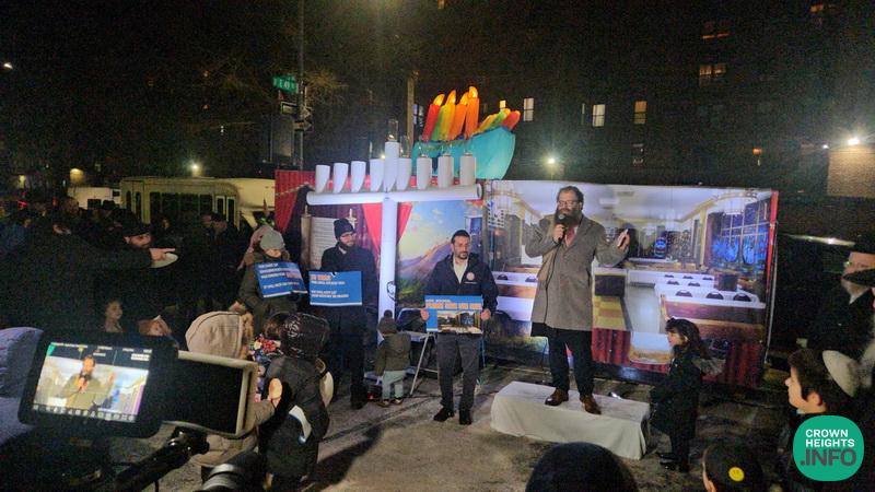 Speaking at the event was Rabbi Yaacov Behrman, a local activist and staunch supporter of the Shul. The Menorah was lit by a recent victim of antisemitic violence after he and his friends were accosted on a local subway.