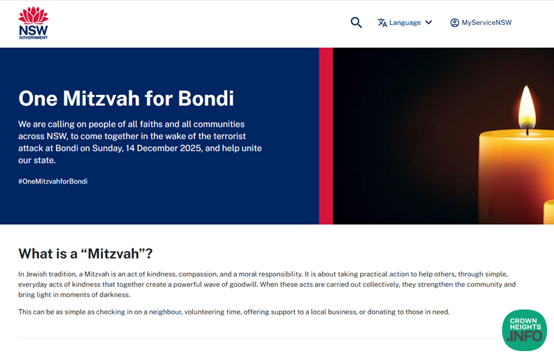 “One Mitzvah for Bondi” New South Wales Government Launches Mitzvah Campaign Following Bondi Terror Attack