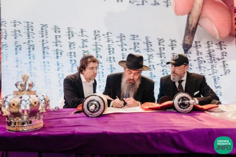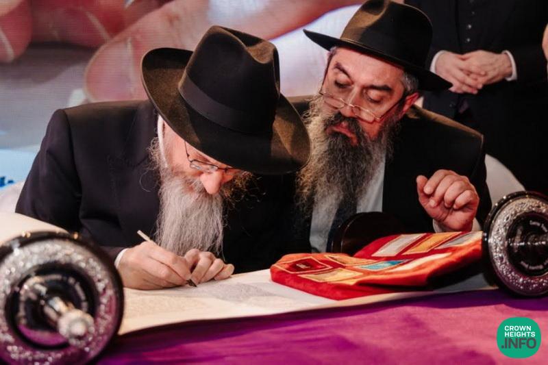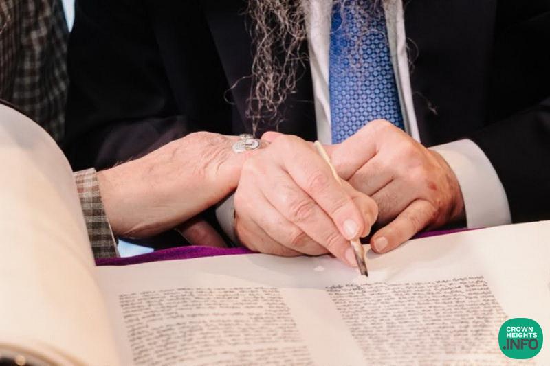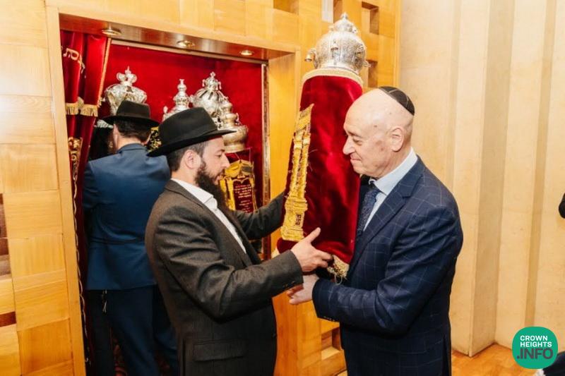 On the fourth night of Chanuka, a magnificent, mehudar Torah scroll was dedicated. After the Chief Rabbi, shlit”a, wrote the final letter, the Torah scroll was brought into the sanctuary with great splendor and joy. The new Torah was welcomed by the congregation’s existing Torah scrolls, carried lovingly by the rejoicing shul members. Together with the many guests, they danced and celebrated by the light of the magnificent menorah, embodying the pasuk: “A mitzvah is a candle, and the Torah is light.”