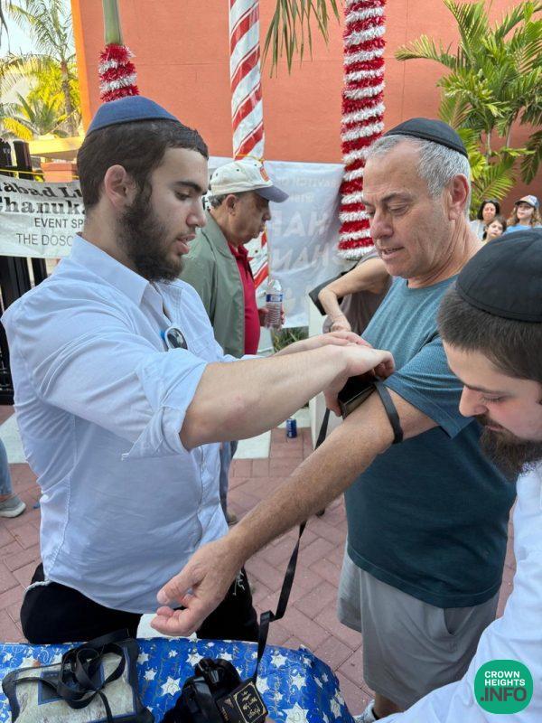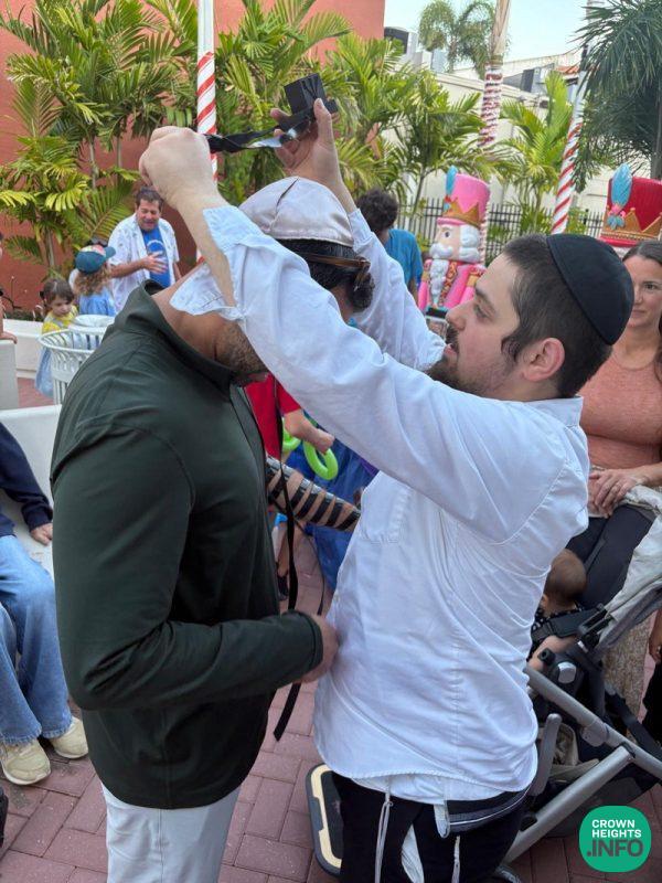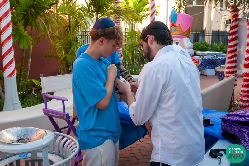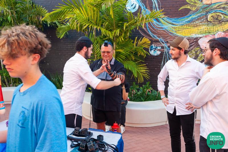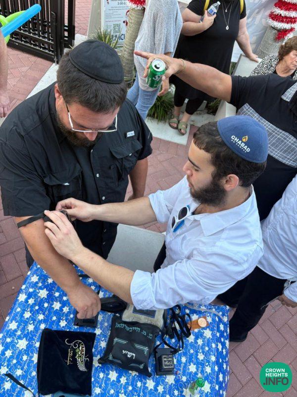 Adding to the inspiration of the evening, dedicated Chabad bochrim moved throughout the crowd, helping many Jewish attendees put on tefillin some for the very first time. Singing and dancing soon filled the park, transforming the celebration into an expression of pure joy, connection, and Jewish pride.