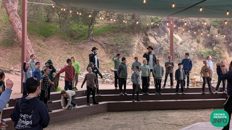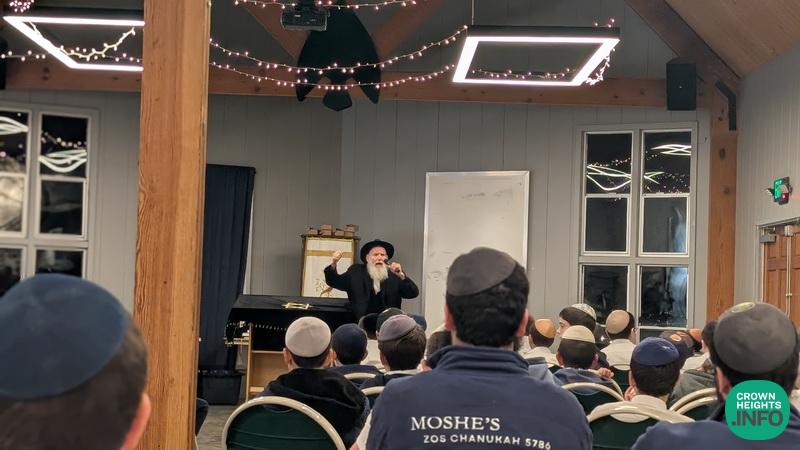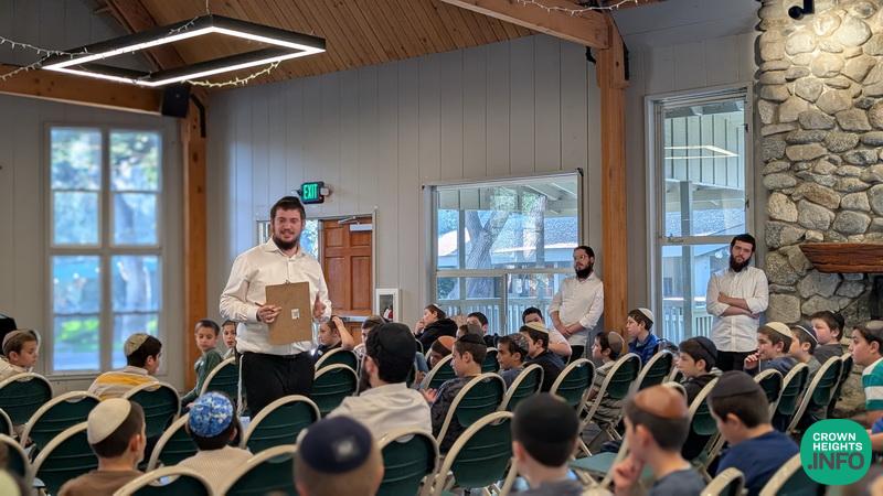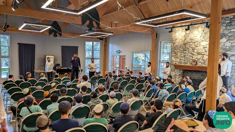 Shabbos filled the camp with songs, farbrengens, and beautifully set meals. Motzei Shabbos featured a melaveh malka with a special visit from Rabbi Shlomo Cunin, head shliach of the West Coast, who spoke to the young shluchim about the importance of their shlichus and being on the front lines of bringing Moshiach. The evening concluded with a hypnosis show in the camp’s auditorium.