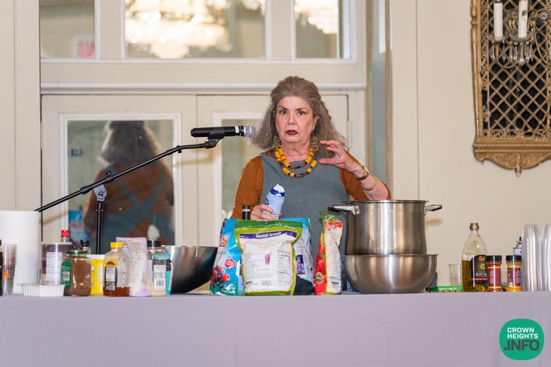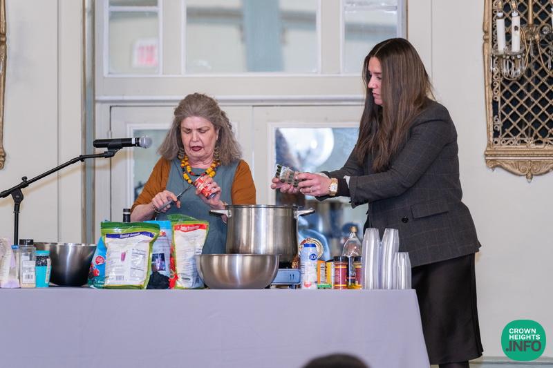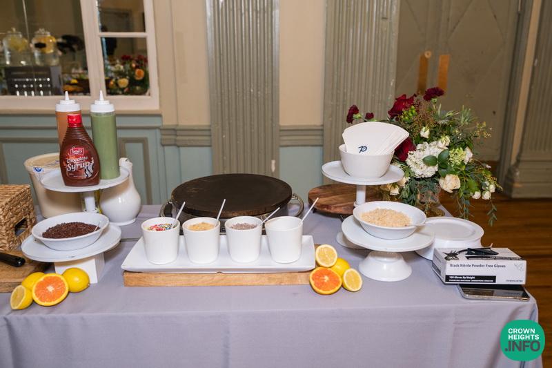 A delicious buffet of fresh fruit, crepes, and refreshing drinks was enjoyed by all. Adding a warm and interactive element to the program, Mrs. Levana Kirschenbaum presented a live cooking demonstration. Women enjoyed tasting the dishes, creating an atmosphere of connection and enjoyment throughout the evening.