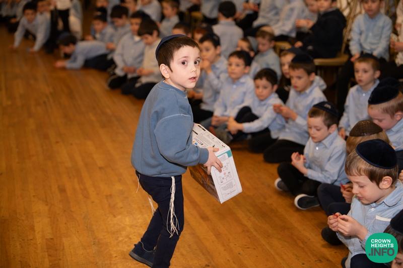 This evening, the celebration extends beyond the preschool and cheder divisions. Beis Medrash Oholei Torah is hosting a special Leil Shishi 7 hour Torah-thon, open to the community. Anash and Temimim are invited to join together in chavrusa learning, special shiurim by Rabbi Simon Jacobson and Rabbi Mordechai Dinerman, 7 raffles on the hour, and leil shishi hot spread.