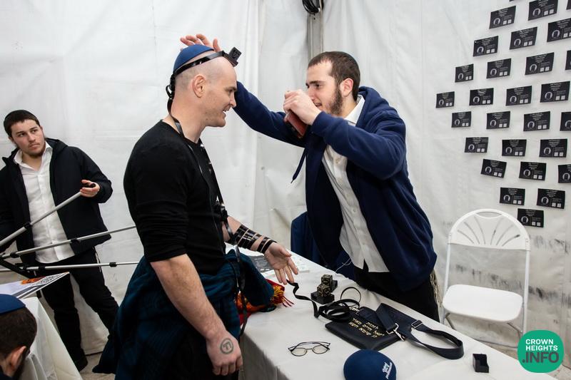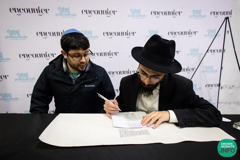 Following the Ohel visit, participants gathered for lunch. But the programming wasn’t over. Tables were set up throughout the area, each offering a different practical mitzvah: Shabbat candle kits, the opportunity to write a letter in a communal Sefer Torah, and more, encouraging young professionals to take on an additional commitment to bring back home.