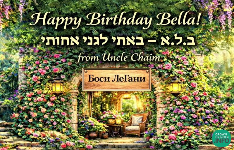A new song in Russian, based on the Bosi LeGani maamorim, has been released just in time for Yud Shvat. It is dedicated in honor of Bella’s birthday on Yud Shvat by her uncle Chaim Tovshteyn. Her personalized spelling of the name Bella in Hebrew has roshei teivos Bosi LeGani Achosi and she is named after this maamor.