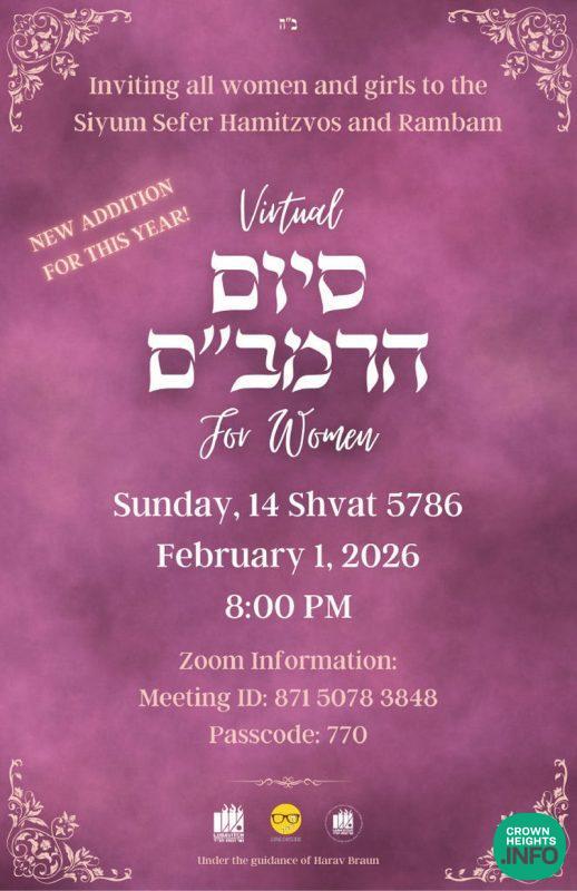 In addition to the Siyumim, the program will highlight the Rebbe’s call for Limmud HaRambam as a unifying force for all Yidden, as well as the opportunities for women to develop a personal appreciation for Rambam going into the new cycle.
