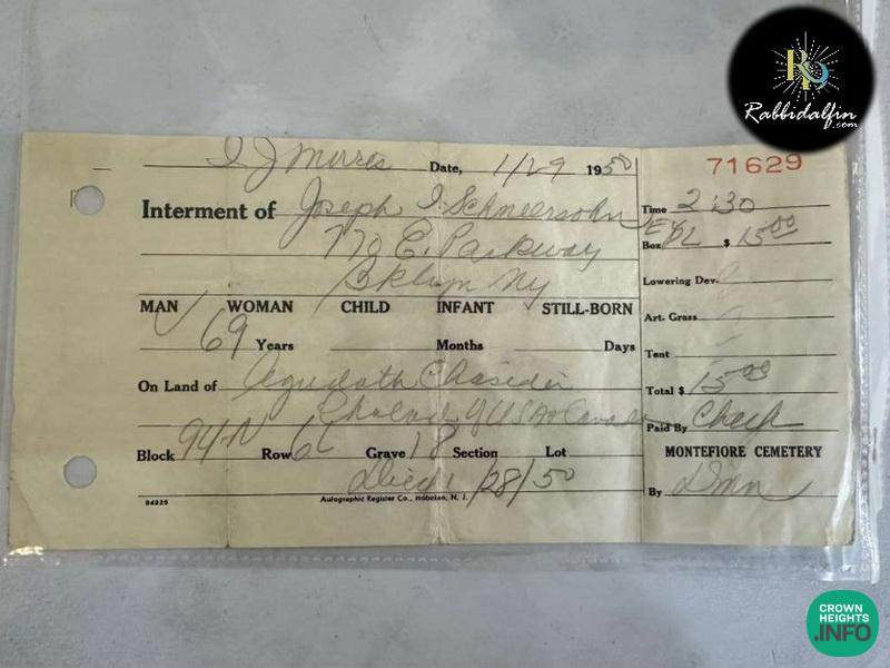 2. The Montefiore Cemetery receipt for the Previous Rebbe’s plot.