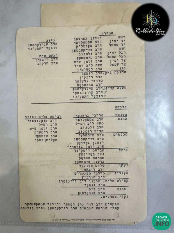 1. The official list of Previous Rebbe’s Tahara, Yud Shevat 1950