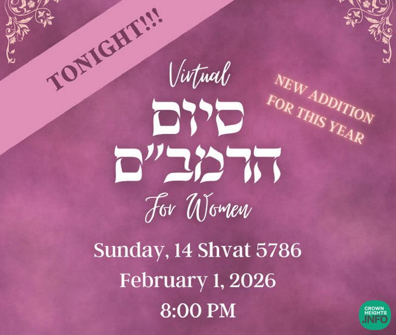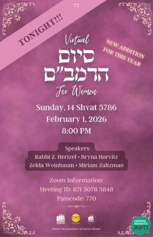 The Women’s Virtual Siyum HaRambam will take place tonight, Sunday evening, 14 Shevat (February 1), at 8:00 PM, LIVE on Zoom.