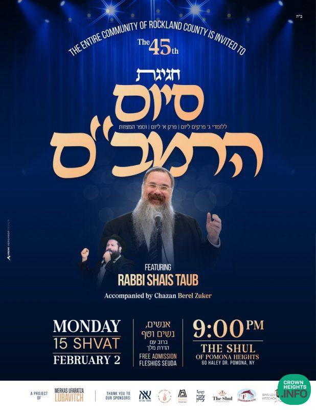 Pomona Gathers For Siyum HaRambam Featuring Rabbi Shais Taub Anash of the Pomona, NY area gathered Monday night for a Grand Siyum Harambam featuring Rabbi Shais Taub. View this post on Instagram A post shared by CrownHeights.info (@chinfo.official)