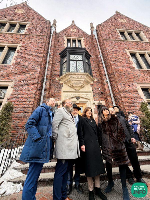 New York Governor Kathy Hochul made a visit today to 770 Eastern Parkway, the world headquarters of the Chabad-Lubavitch movement, following last week’s vehicle ramming incident that caused damage to the building and drew national attention.