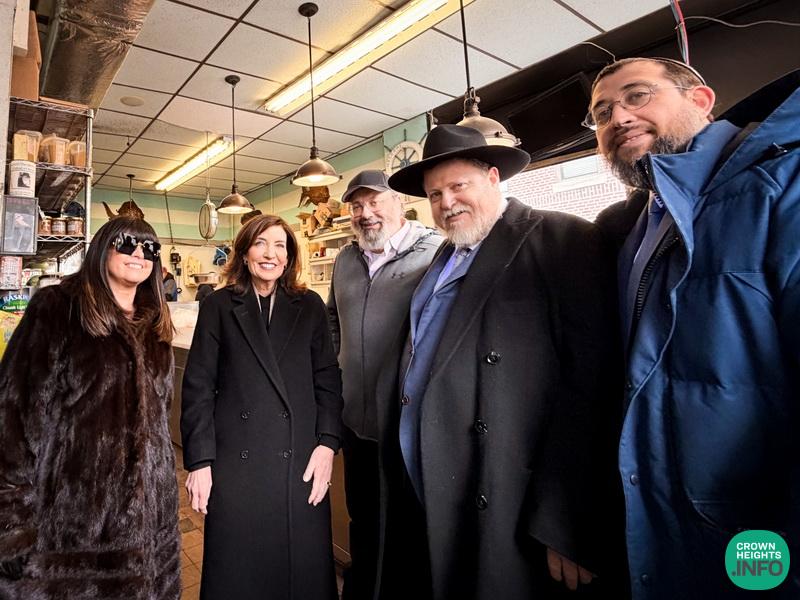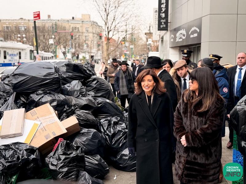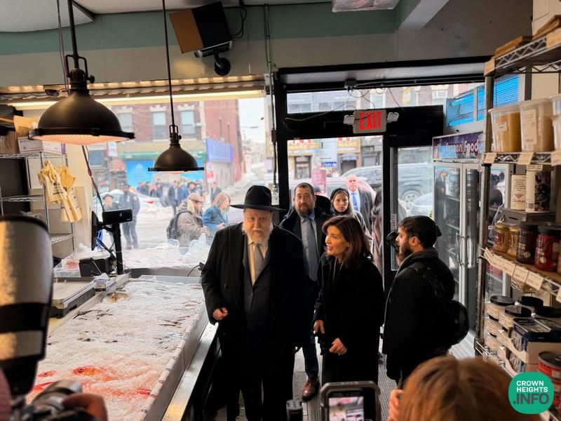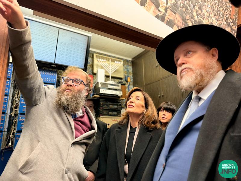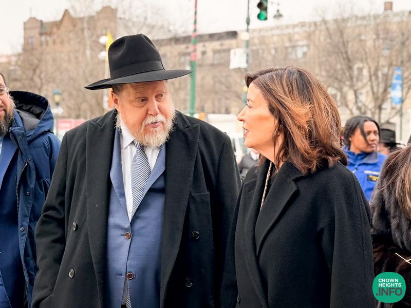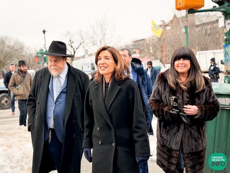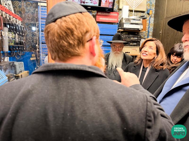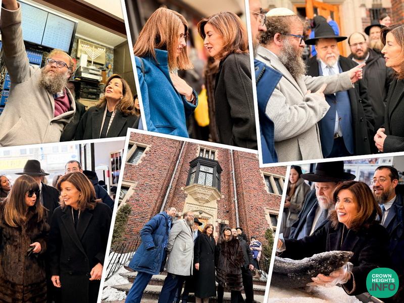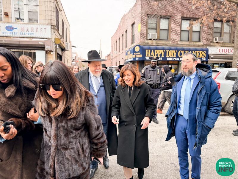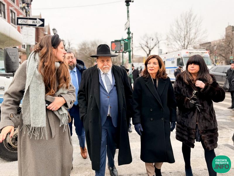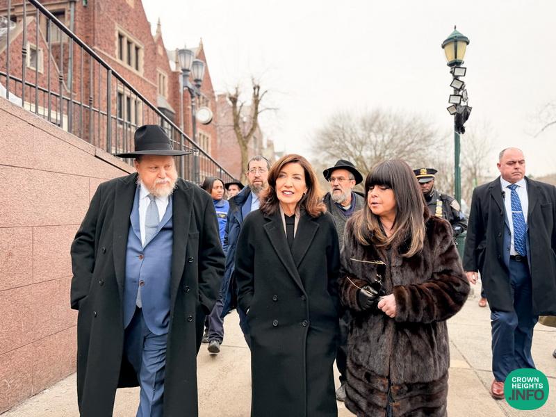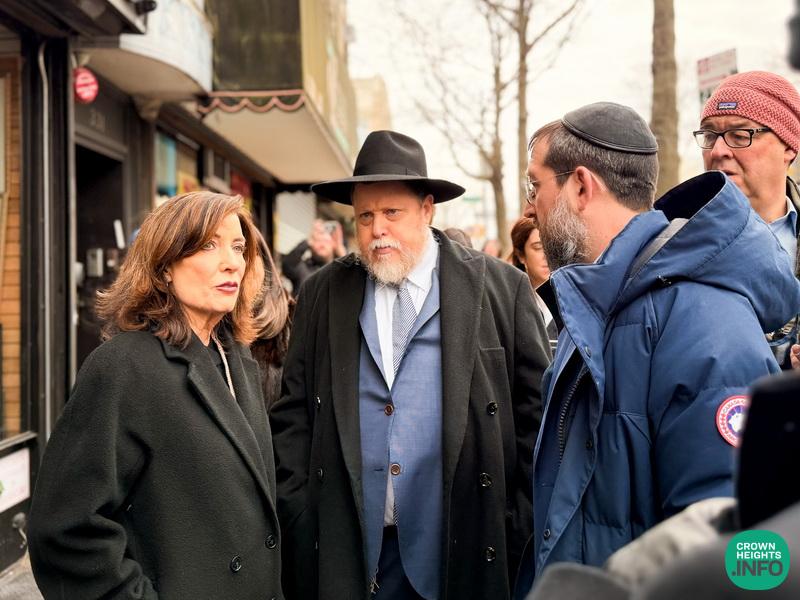 Governor Hochul toured the site of the damage and met with members of the Crown Heights community during her visit. The visit was led by Rabbi Yaacov Behrman and included elected community representatives and activists.