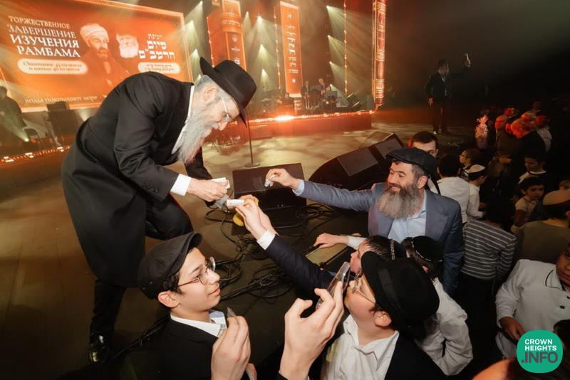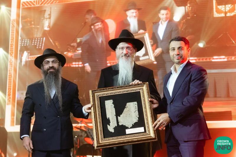 Three Perakim Per Day: The siyum was made by philanthropist R’ Yehuda Davidov, chairman of the 770 Russia Foundation. In recognition of his and his family’s dedicated support of Torah initiatives and this historic event, he was presented with an extraordinary gift—pages from one of the earliest printed editions of the Rambam, dating back to the year 1474.