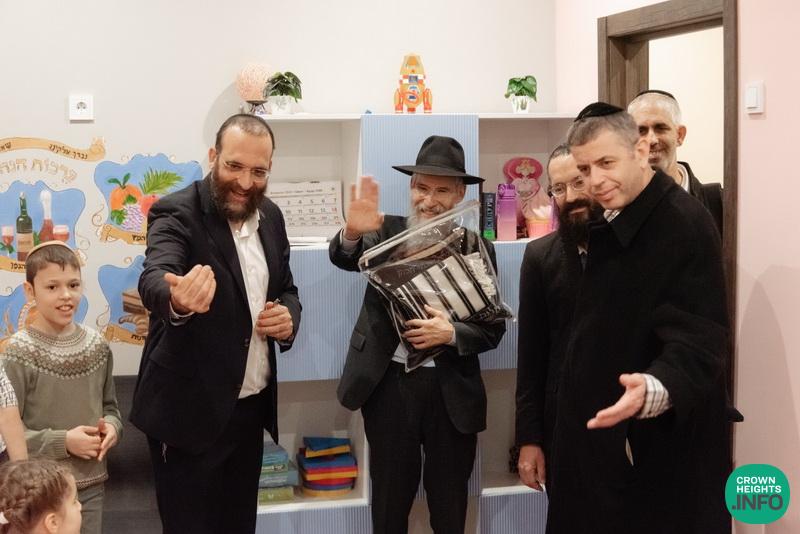 “Which songs do you know?” R’ Avraham Fried asked the excited children, immediately breaking into a medley of his beloved hits together with them — including the nostalgic “Shalom Aleichem,” “Sheyibaneh Beit HaMikdash,” “Abba,” and many others. At the children’s request — and with complete enthusiasm on his part — each child merited a personal photo and warm words of encouragement from Fried, who made sure no child was left without a smile and a compliment, despite the late hour.