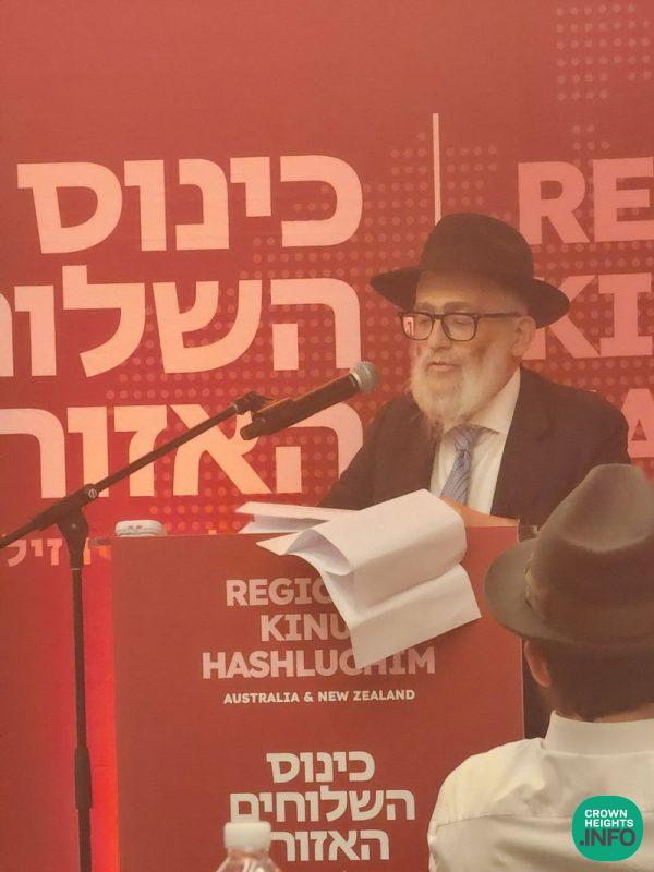 The dedicated group of individuals and organizations who made the Kinus possible include Rabbi Pinchus Feldman OAM, Rabbi Chaim Tzvi Groner, Rabbi Joseph Gutnick, Rabbi Mendy Kotlarsky, and Chabad of Bondi.