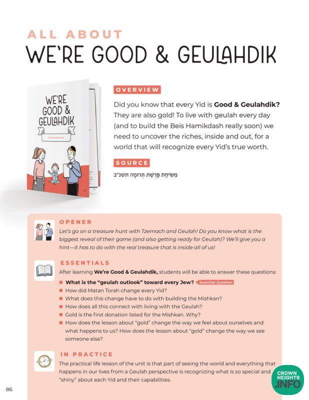 This powerful idea is at the heart of Good and Geulahdik, a featured segment of the Live with Geulah Now curriculum from The Moshiach Office at Merkos 302, available as a free download.