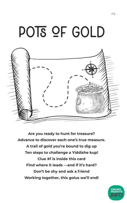 Bonus: Along with the booklet, for a limited time only, the Moshiach Office is making available a companion game, Pots and Gold, usually included only in the paid full-package Digital Aids Portal for teachers (with games, worksheets, slideshows, workbooks, and more):