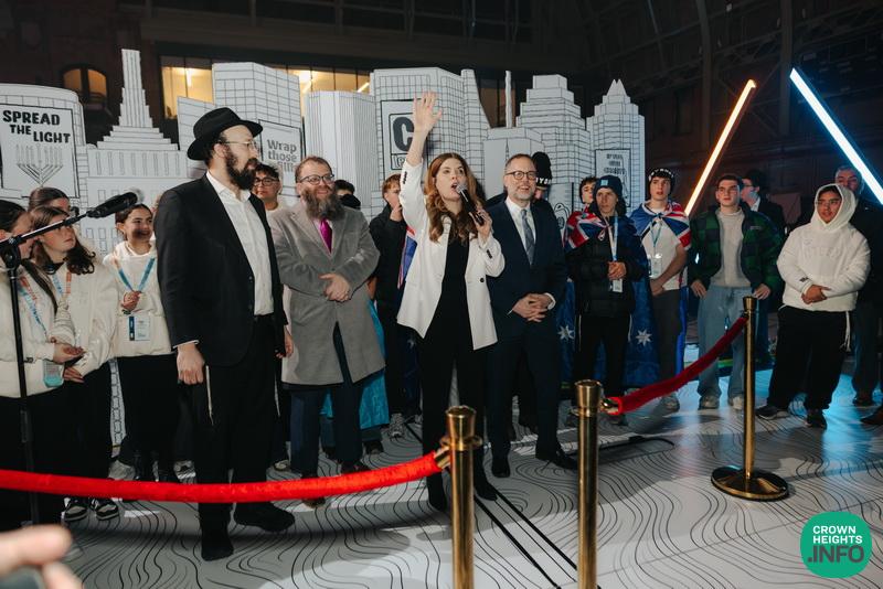 The evening’s most powerful moment came when 17-year-old Priva Schlanger took the stage together with the Sydney delegation. Schlanger’s father, Rabbi Eli Schlanger, was among 15 people murdered during the Chanukah terror attack at Bondi Beach on December 14.