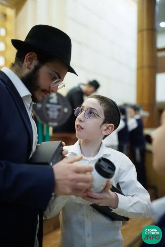 Each child received a personalized, branded thermos as a token of appreciation—encouraging the beautiful custom of enjoying something hot on Motzaei Shabbos after learning. In addition, the coveted raffle prize—a ticket to travel to the Rebbe—was won by the outstanding student Yisrael Diktshtein.