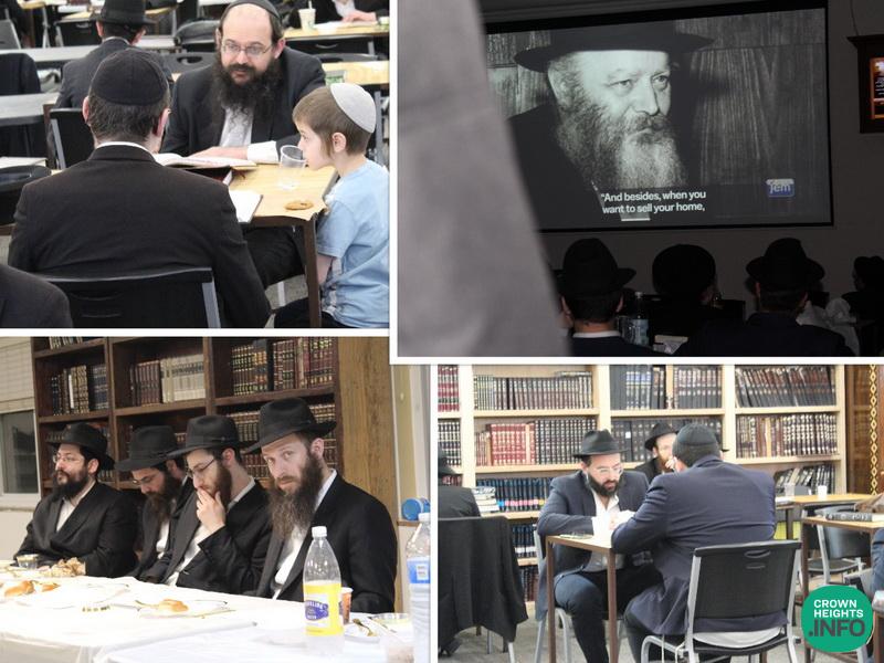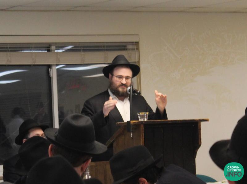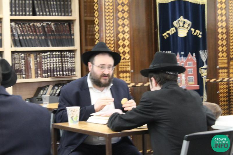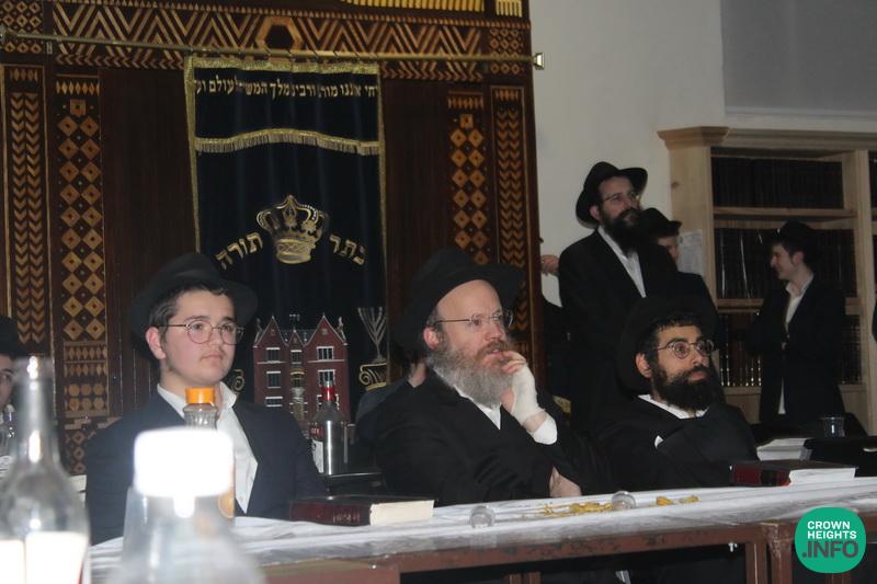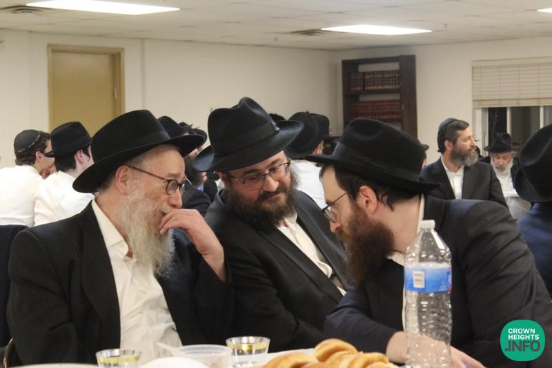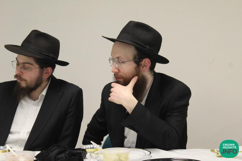During the course of the seudah, divrei Torah and Hisorerus were shared by hatmimim Shmaryahu Bronstein (PA) , as well as shluchim Rabbi Zalman Raskin (PA), Rabbi Shmuel Turk (CH) and Rabbi Mordechai Groner (Calgary). The Seudah was followed by Farbrengens all night with Rabbi Sender Geinsinsky (Maryland) and Rabbi Dovid Abba Mockin (Rochester).