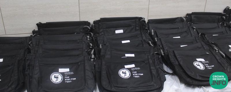 The fathers were greeted with a custom-designed welcome bag with information regarding the Shabbos schedule and program .