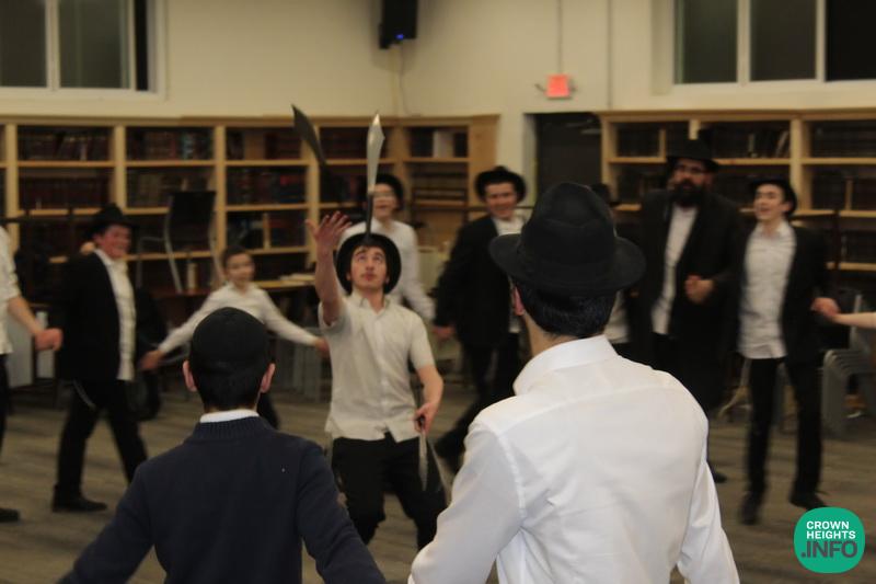 After Minchah, there was a special farbrengen in the Zal with Rabbi Levi Simpson. The farbrengen was followed by Maariv, a video of the Rebbe and dancing for Chodesh Adar. A special Melave Malkah – with the theme of “50 years of Mivtza Chinuch” was held in the building of the new Yeshiva Gedolah.