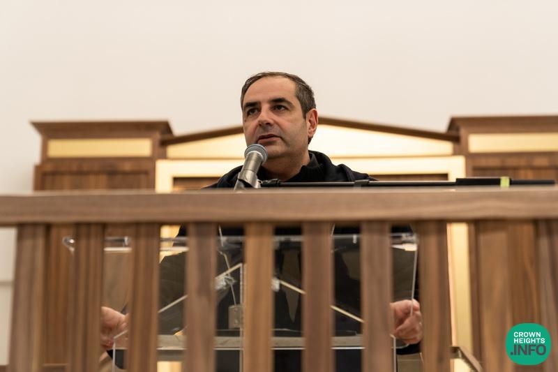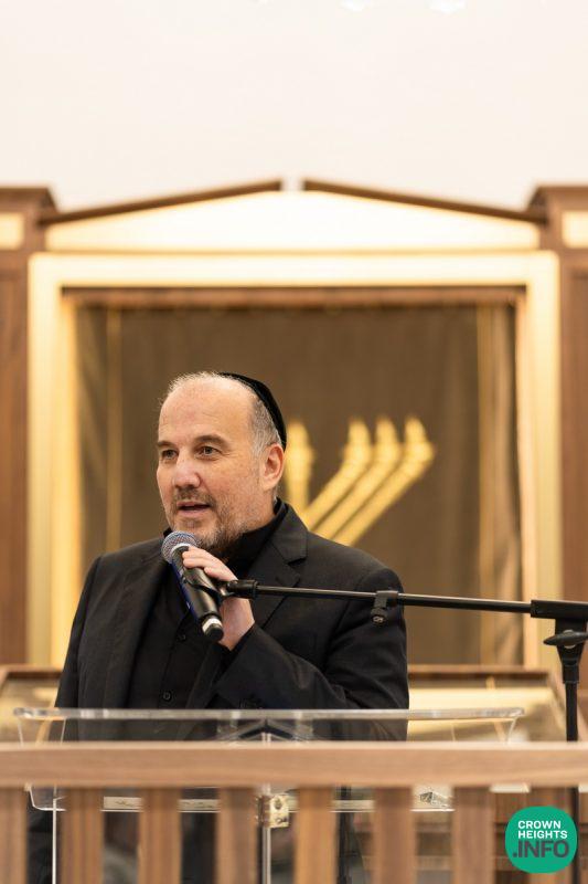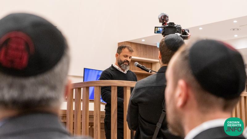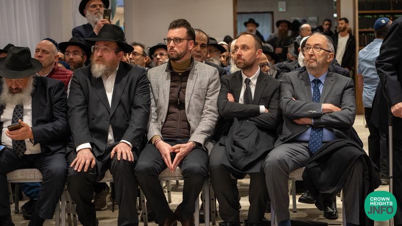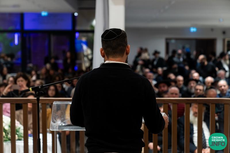 The dedication ceremony was emceed by Rabbi Shmuel Bradaovitch, director of Shiur Alef at the yeshiva. The program opened with remarks by the yeshiva’s director, Rabbi Yitzchak Namanov, who read a letter from the Lubavitcher Rebbe sent to the yeshiva on the occasion of a building dedication, connected to Parshas Terumah. He was followed by the Rosh Yeshiva, Rabbi Yechiel Kalmenson, who shared words of Torah and emphasized the significance of expanding spaces of Torah and holiness.