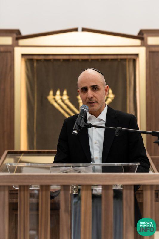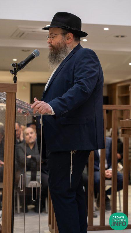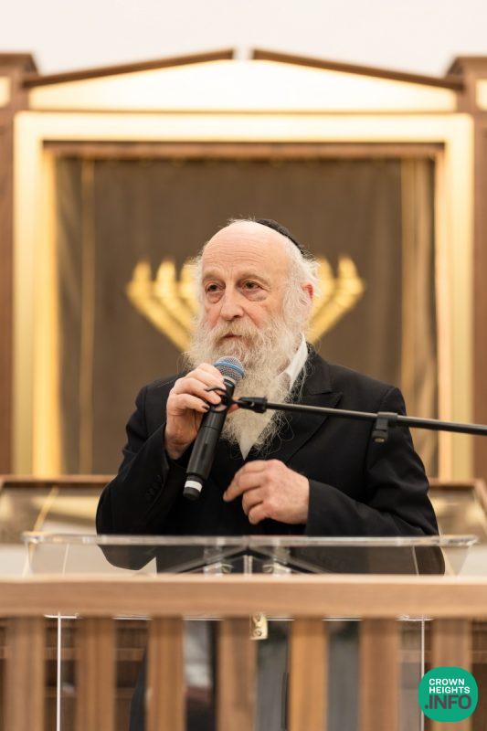 The dedication ceremony was emceed by Rabbi Shmuel Bradaovitch, director of Shiur Alef at the yeshiva. The program opened with remarks by the yeshiva’s director, Rabbi Yitzchak Namanov, who read a letter from the Lubavitcher Rebbe sent to the yeshiva on the occasion of a building dedication, connected to Parshas Terumah. He was followed by the Rosh Yeshiva, Rabbi Yechiel Kalmenson, who shared words of Torah and emphasized the significance of expanding spaces of Torah and holiness.