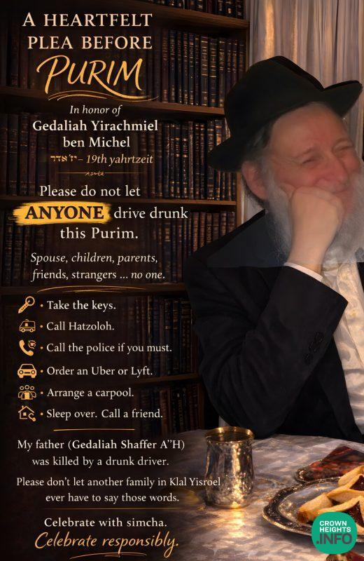 Please make sure no one in your life drives drunk this Purim — or ever.