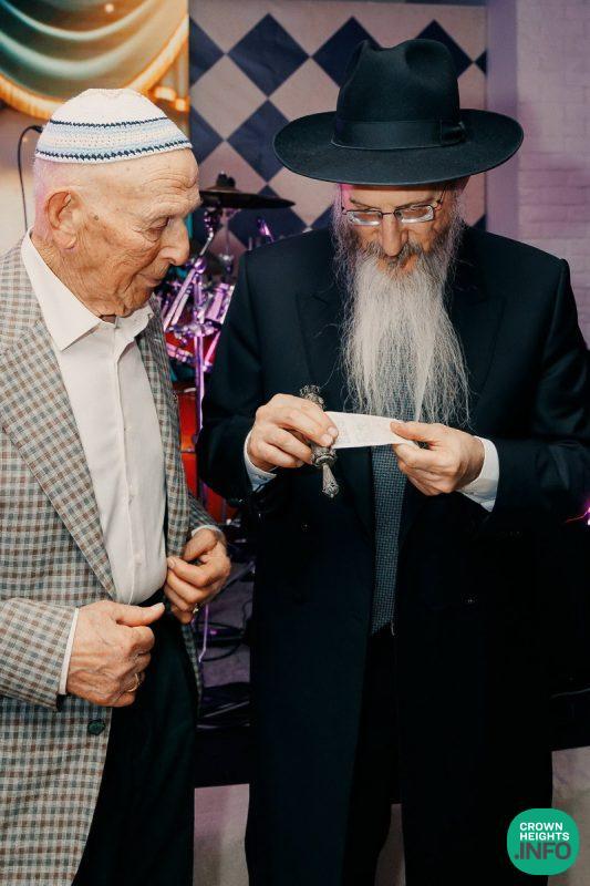 With the conclusion of the central Krias HaMegillah before the large crowd, hundreds of young Jews gathered to hear the words of the Chief Rabbi, who presented the rare Megillah before them. Rabbi Lazar connected in his words the vitality of Alexander with his devotion to our Mesorah: “If you all want to be joyous and serene, with Arichus Yamim like Alexander Gorodetsky, you should keep a Megillas Esther in your home and walk in the path of Am Yisroel’s heritage, guarding Torah and Mitzvos. Our ancestors drew optimism from this Megillah, and from it one can understand that it is impossible to defeat the Jewish people.”