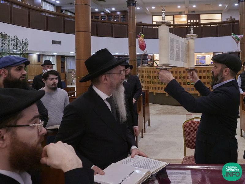 With the conclusion of the central Krias HaMegillah before the large crowd, hundreds of young Jews gathered to hear the words of the Chief Rabbi, who presented the rare Megillah before them. Rabbi Lazar connected in his words the vitality of Alexander with his devotion to our Mesorah: “If you all want to be joyous and serene, with Arichus Yamim like Alexander Gorodetsky, you should keep a Megillas Esther in your home and walk in the path of Am Yisroel’s heritage, guarding Torah and Mitzvos. Our ancestors drew optimism from this Megillah, and from it one can understand that it is impossible to defeat the Jewish people.”