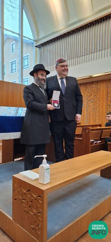 The state decoration was handed over on behalf of the President by Erki Holmberg, Head of the Vice Presidential Office’s Interior Department, who presented the prestigious medal to Rabbi Kot in front of community members and guests gathered in the synagogue.