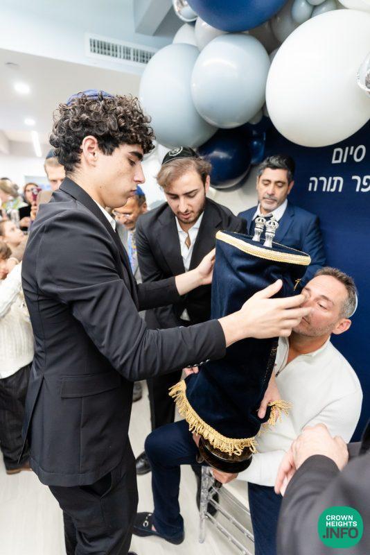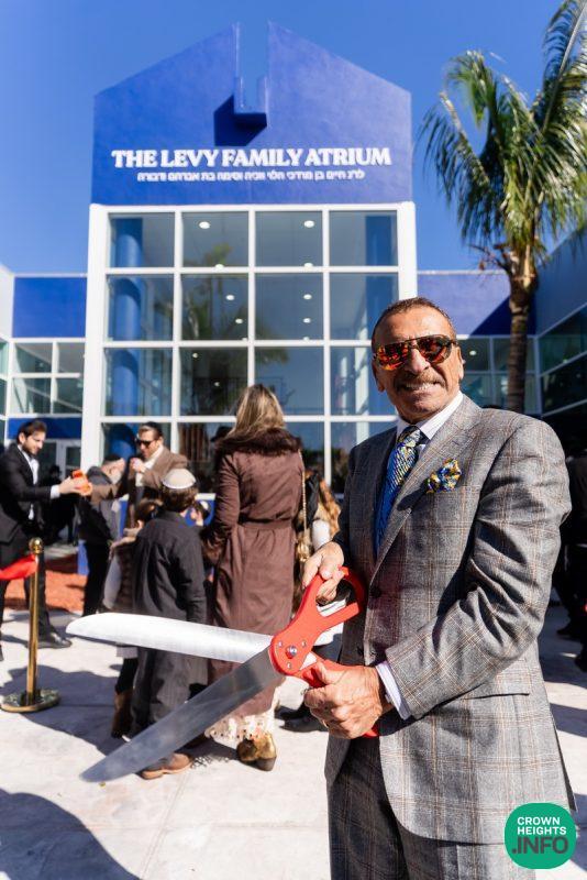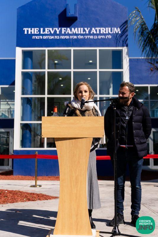 After hearing from Rabbi Leib Schapiro, Rosh Yeshiva of Miami’s Yeshiva Gedolah, and cutting the ribbon, the assembled filed into the hall to complete a new sefer Torah sponsored by Motti and Miri Levi and their children, Yaniv and Taryn Levi, in loving memory of their mother and grandmother, Sima, on her first yahrzeit. Amid joyous song and dance, the new Torah was then welcomed to its new home via the imposing atrium entrance, also dedicated by the Levi family.