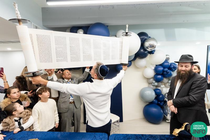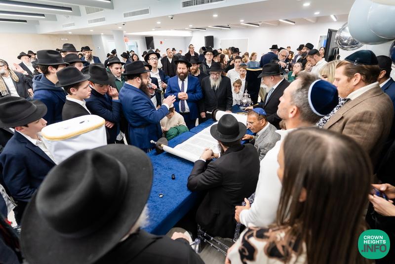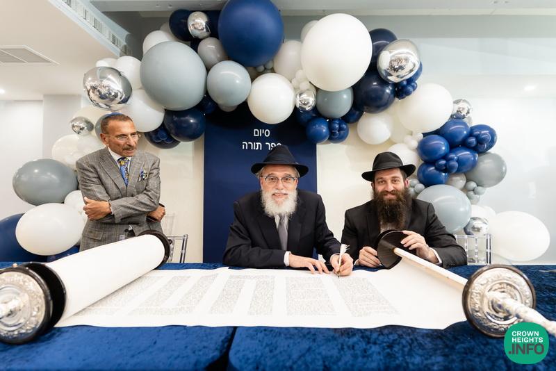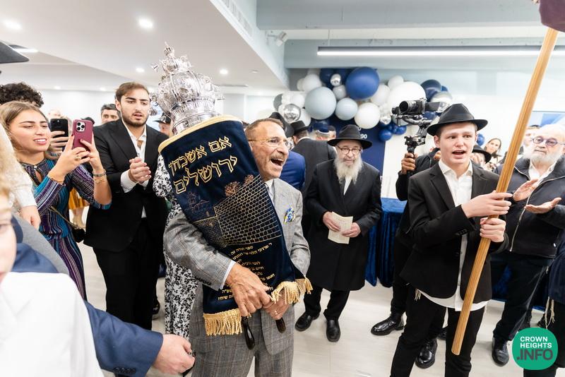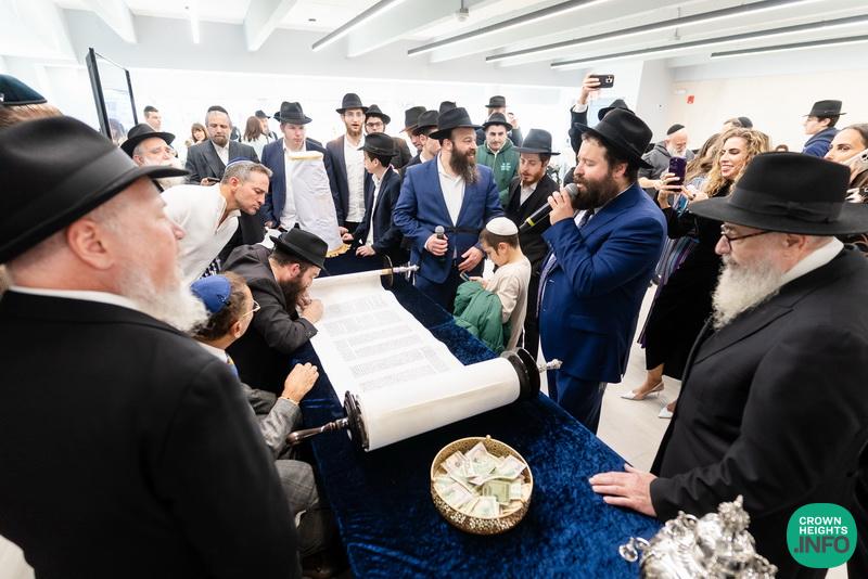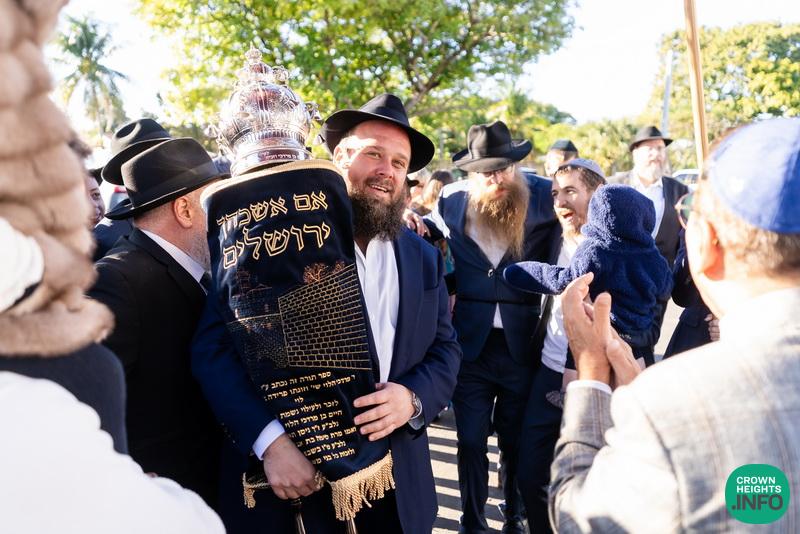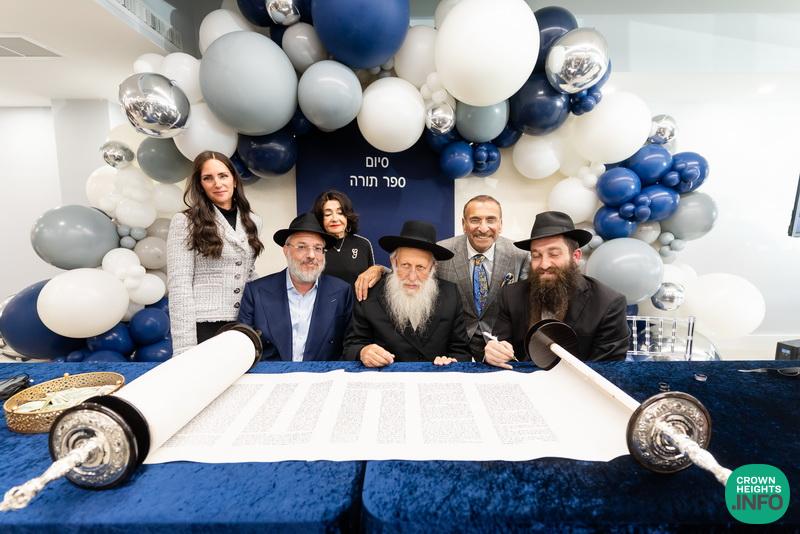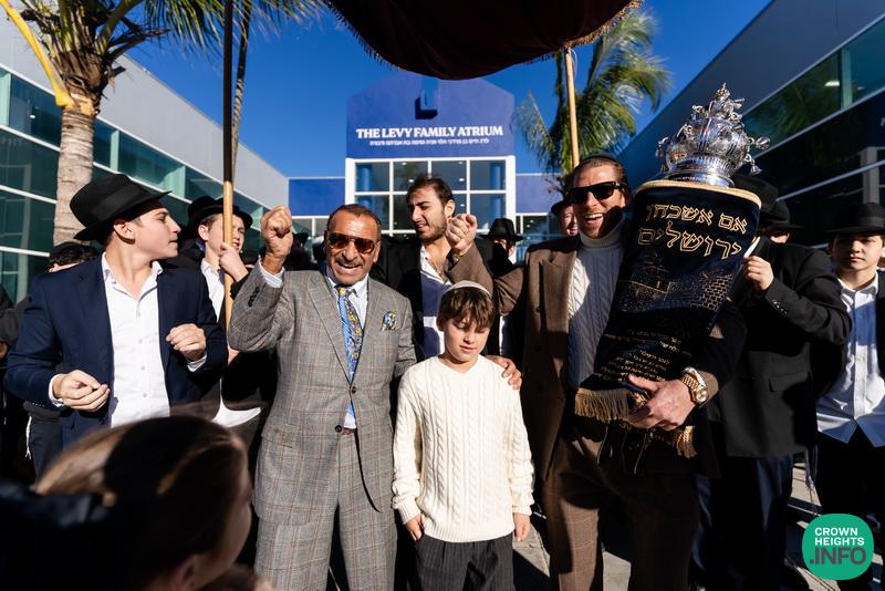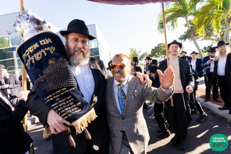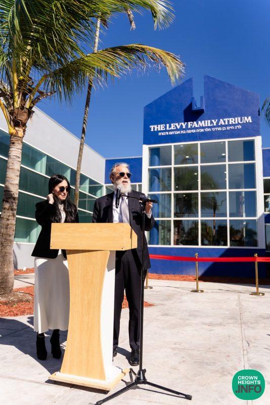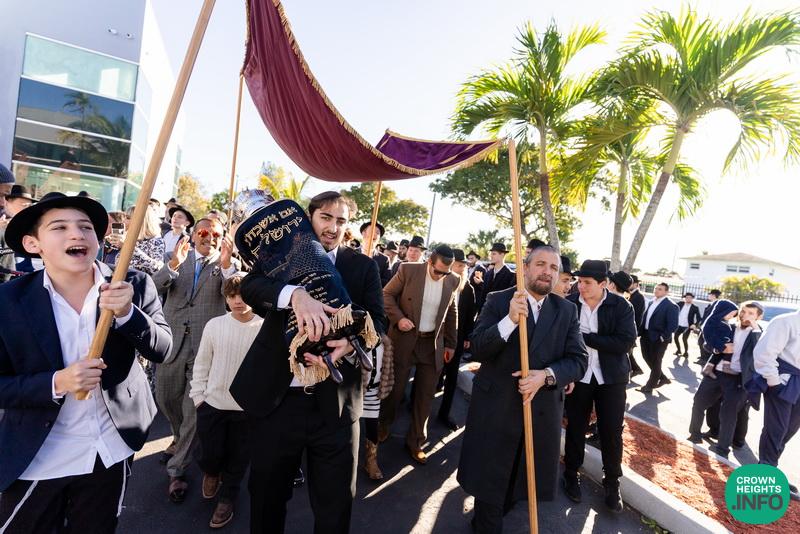After hearing from Rabbi Leib Schapiro, Rosh Yeshiva of Miami’s Yeshiva Gedolah, and cutting the ribbon, the assembled filed into the hall to complete a new sefer Torah sponsored by Motti and Miri Levi and their children, Yaniv and Taryn Levi, in loving memory of their mother and grandmother, Sima, on her first yahrzeit. Amid joyous song and dance, the new Torah was then welcomed to its new home via the imposing atrium entrance, also dedicated by the Levi family.