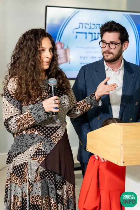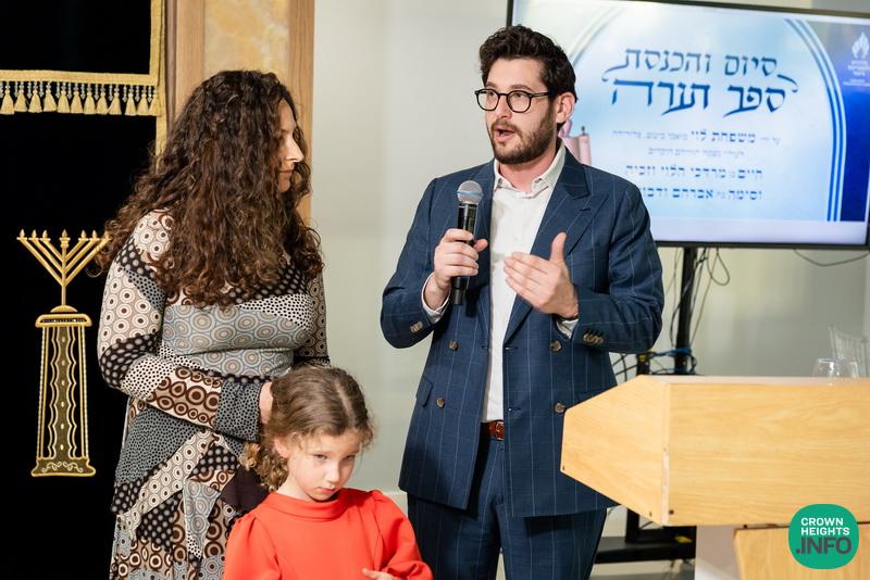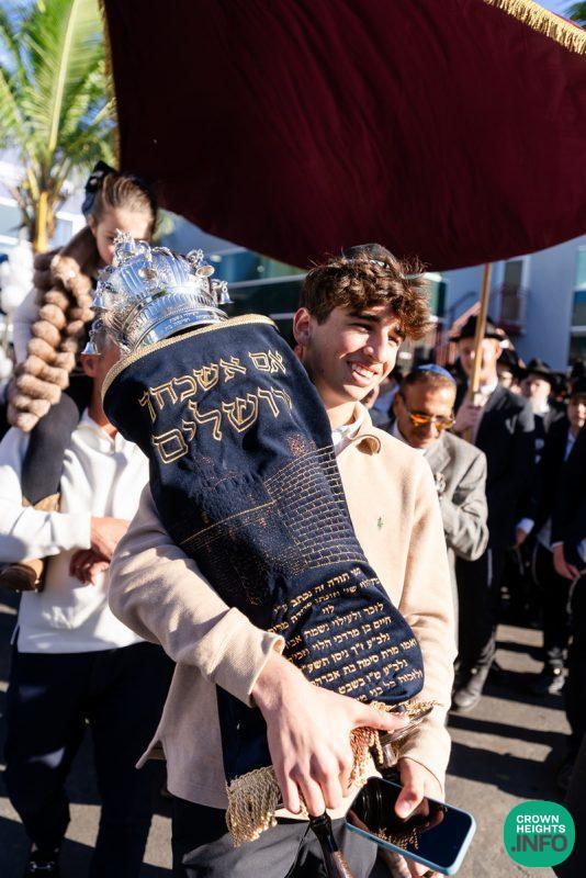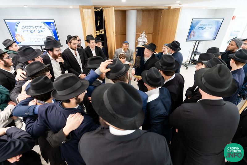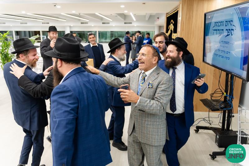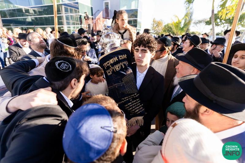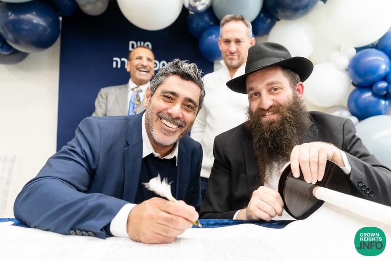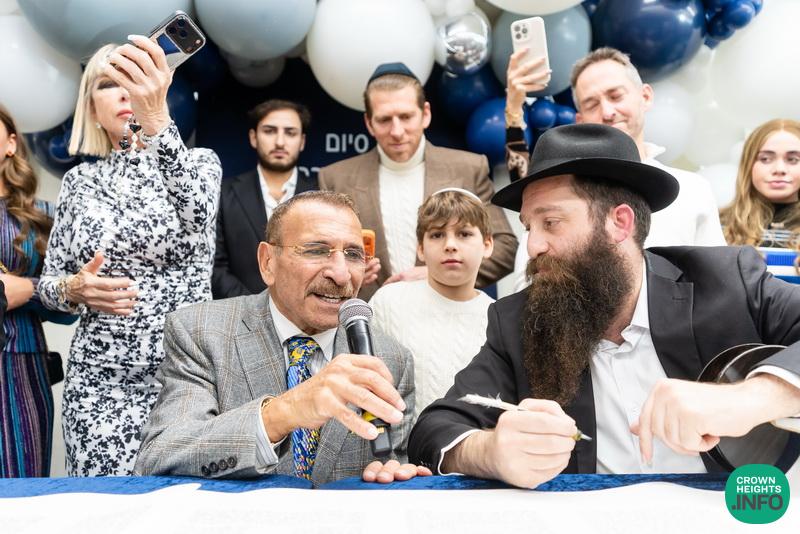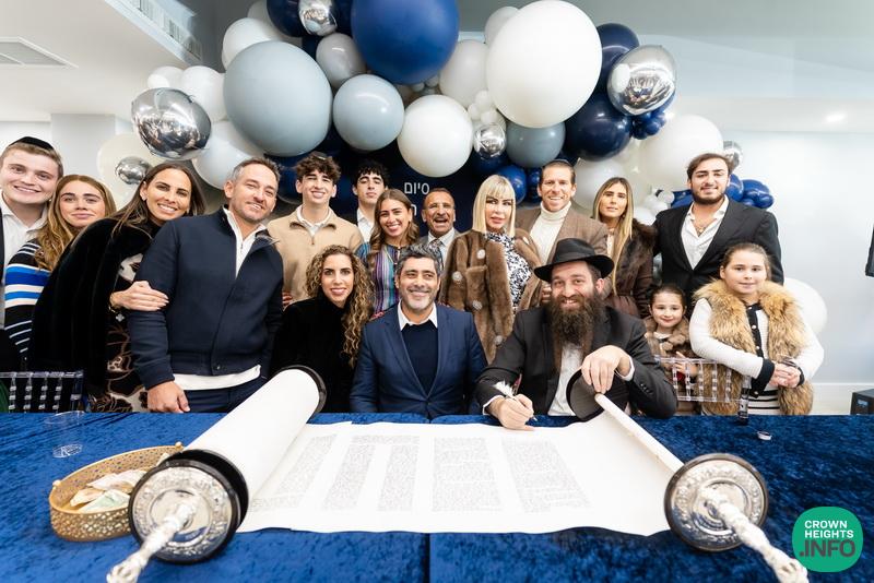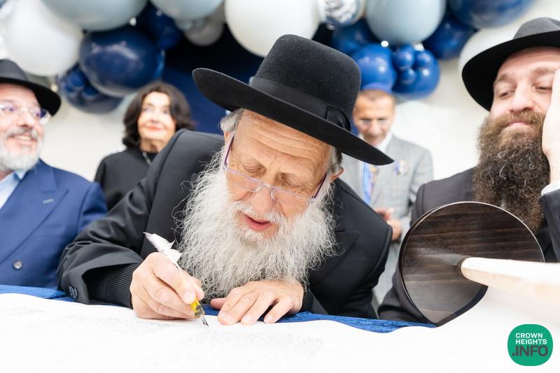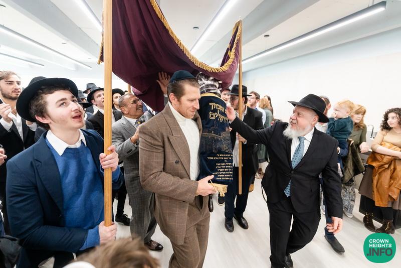 After hearing from Rabbi Leib Schapiro, Rosh Yeshiva of Miami’s Yeshiva Gedolah, and cutting the ribbon, the assembled filed into the hall to complete a new sefer Torah sponsored by Motti and Miri Levi and their children, Yaniv and Taryn Levi, in loving memory of their mother and grandmother, Sima, on her first yahrzeit. Amid joyous song and dance, the new Torah was then welcomed to its new home via the imposing atrium entrance, also dedicated by the Levi family.