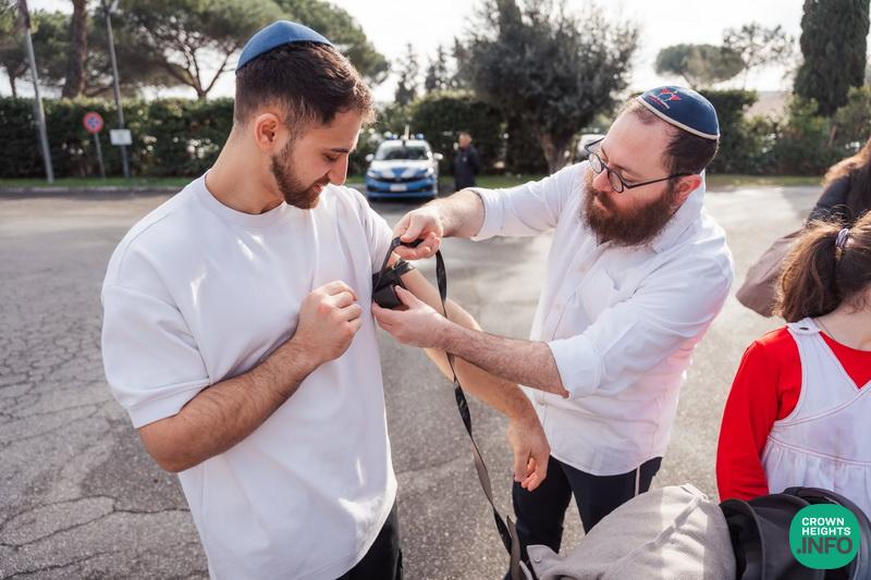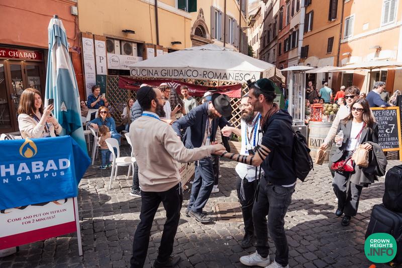 As Shabbos approached, the women gathered for candle lighting while the men explored the power and meaning of Shabbos. The evening continued with a lively Kabbalas Shabbos. Shabbos dinner featured words from Mrs. Rivkah Leah Hazan, head Shlucha of Italy, delicious Kosher Italian-style cuisine, songs, and farbrengens that lasted throughout the night.