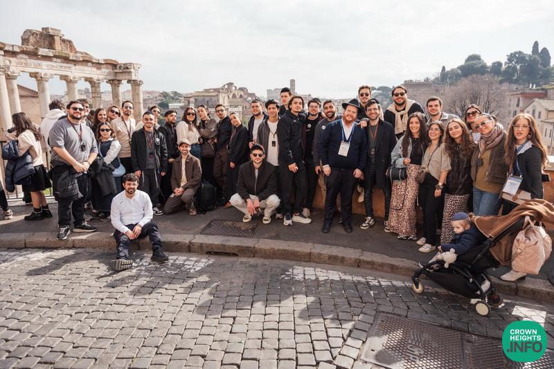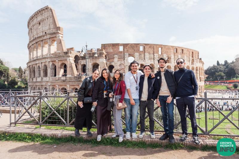 Sunday morning, students embarked on a guided tour of Rome, visiting iconic sites and historical landmarks, including the Arch of Titus, which brought out the resilience of the Jewish people. The weekend concluded with a closing program, “Geshmak to Be a Yid – Here, There, and Everywhere,” where students were sent back to their campuses energized and inspired, with presenters Mrs. Sonya Wolvovsky and Rabbi Yitzchak Schochet, and music by Tal Vaknin, urging them to carry the Pegisha spirit forward.
