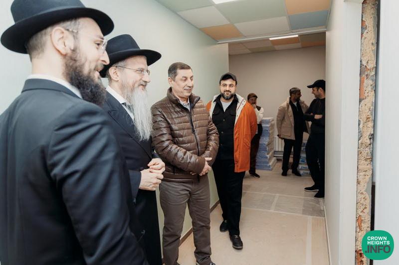 With construction nearing completion, the Chief Rabbi of Russia, HaGaon Rabbi Berel Lazar Shlita, visited the new Center for Special-Needs Children to tour the facility and follow up on progress. He was hosted by the center’s director, Rabbi Avraham Elimelech Gedzh, who guided him and his entourage through the newly renovated building, which will open its doors in the coming months, much to the anticipation and joy of parents and families.