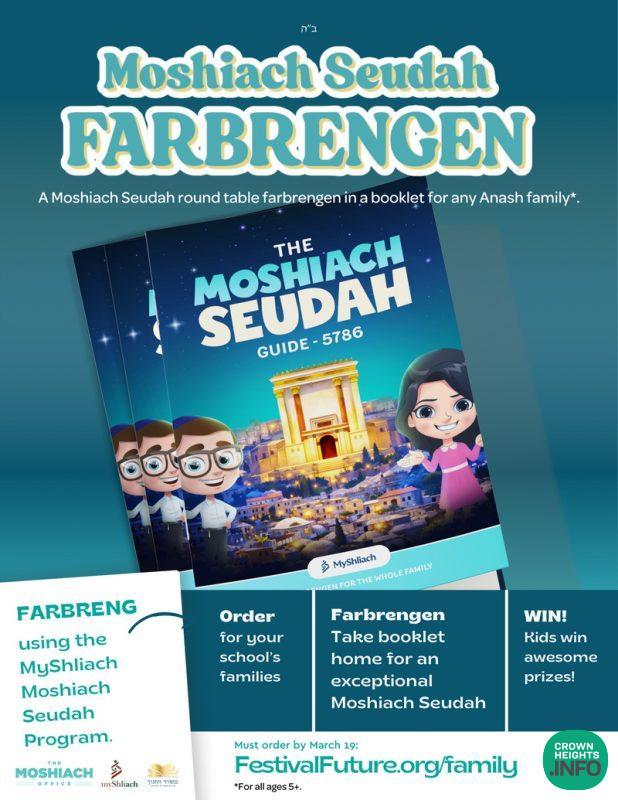 Thanks to a visionary partner, the Family Moshiach Seudah Farbrengen, normally priced at $11, is now available, until March 19th, for just $1 each for schools to purchase for their families.