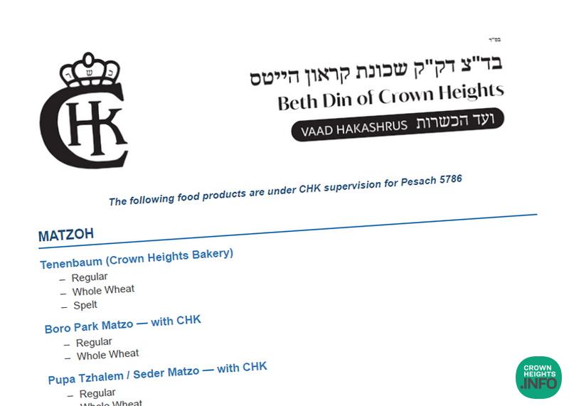 List Released of Kosher L’Pesach Products Certified Under The CHK A list of food products under CHK supervision for Pesach 5786 has been released by the Crown Heights Vaad Hakashrus. CHK_Pesach_5786_Products.docx (1)Download